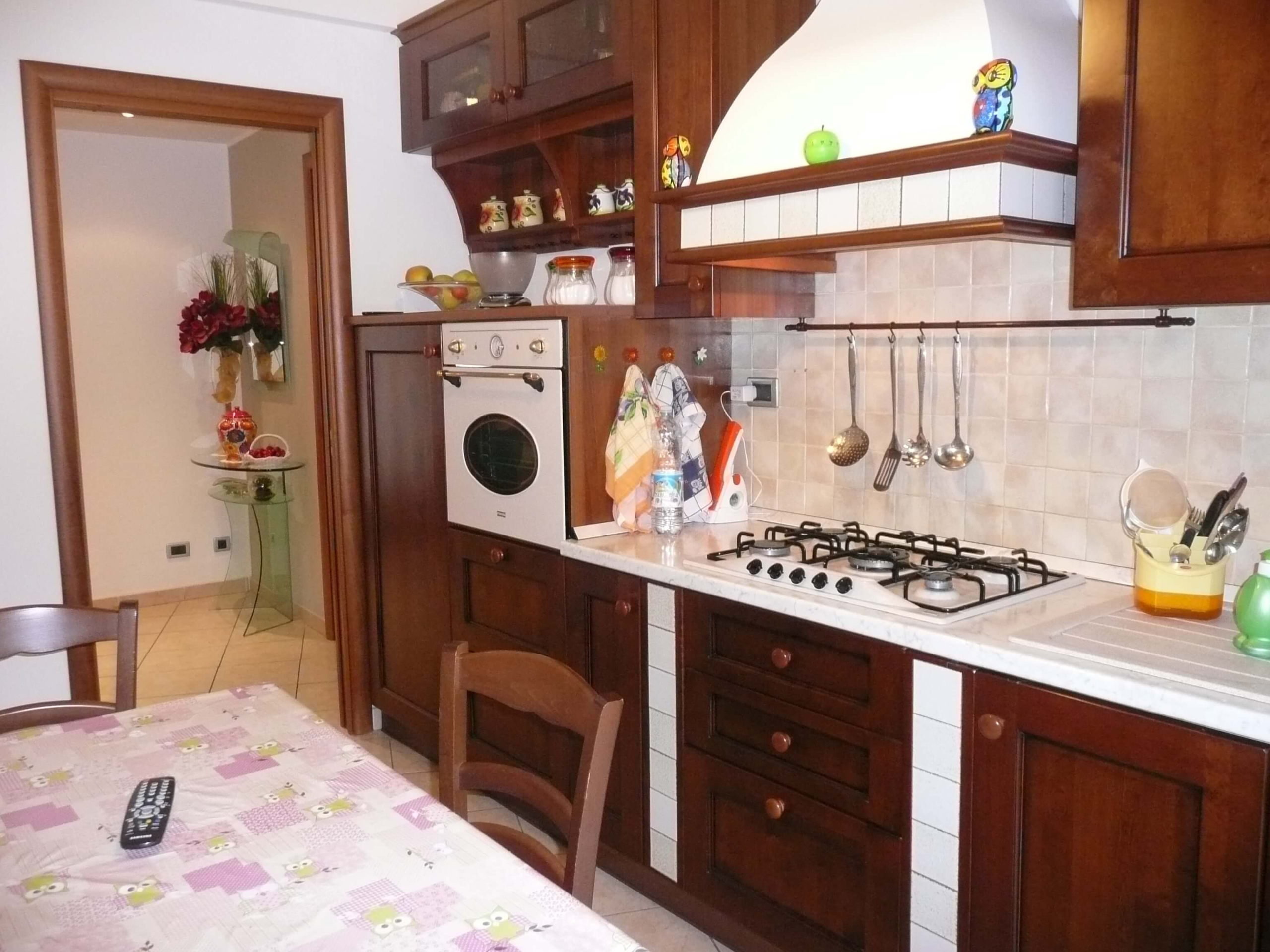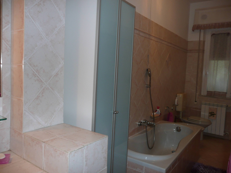Dall’altro lato della zona giorno si trovano invece la cucina abitabile (con lavastoviglie) che affaccia su un ulteriore balcone verandato con vista sulla collina circostante ed il bagno finestrato.