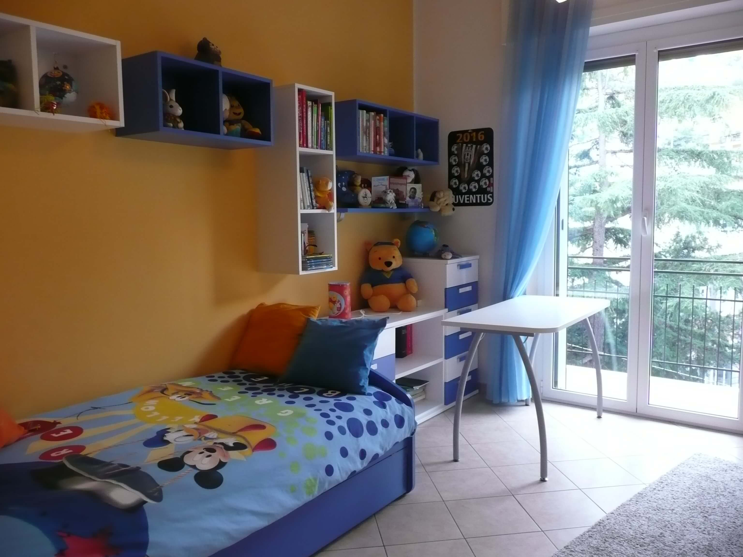 Percorrendo il disimpegno incontriamo prima la camera matrimoniale e quindi una seconda camera sempre balconata.