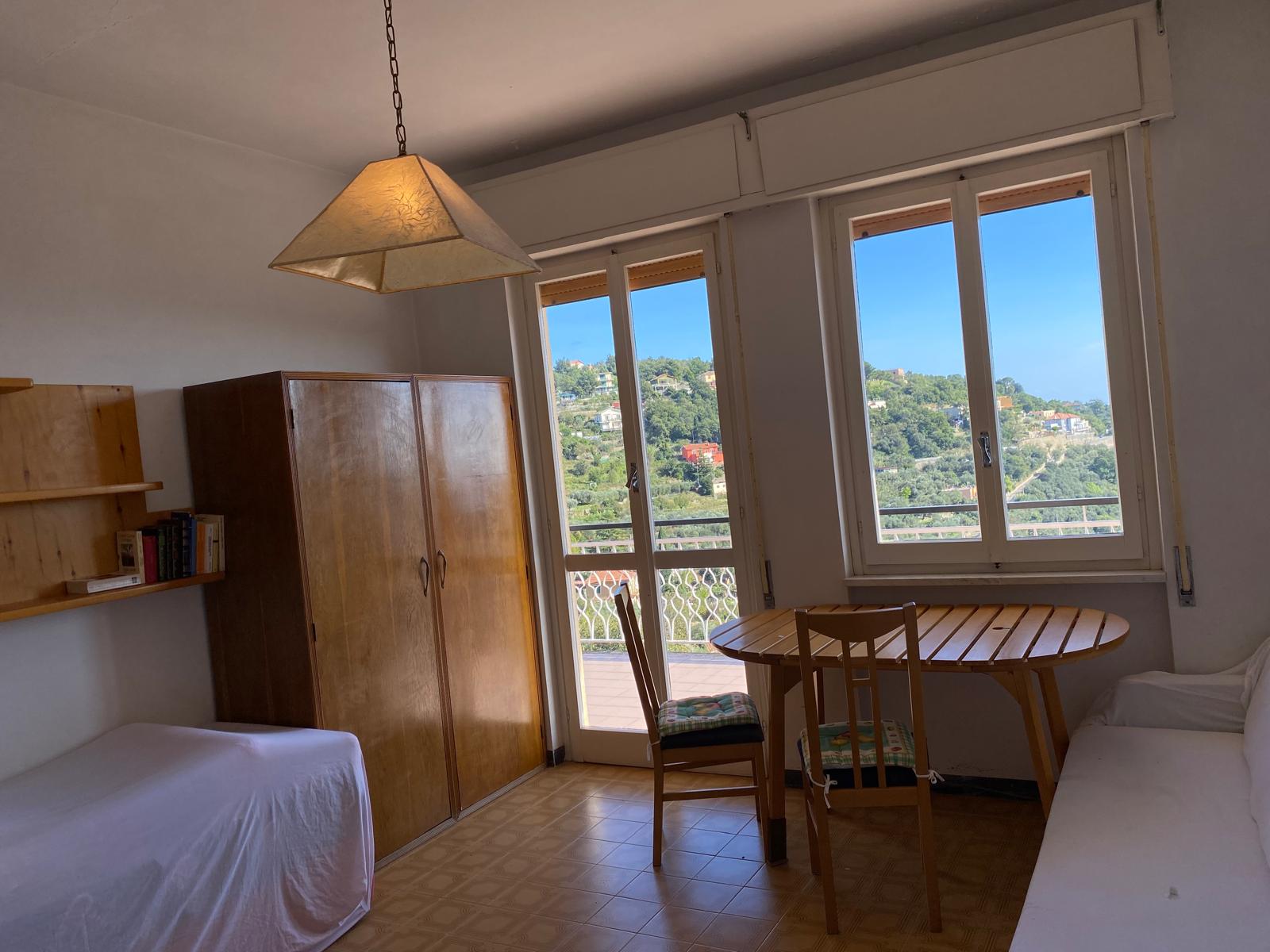 Entrambe le stanze sono fronte mare ed hanno entrambe sia finestra che porta finestra con affaccio sulla splendida generosa terrazza con incantevole vista frontale sul golfo di Noli e vista aperta sulla collina circostante.
