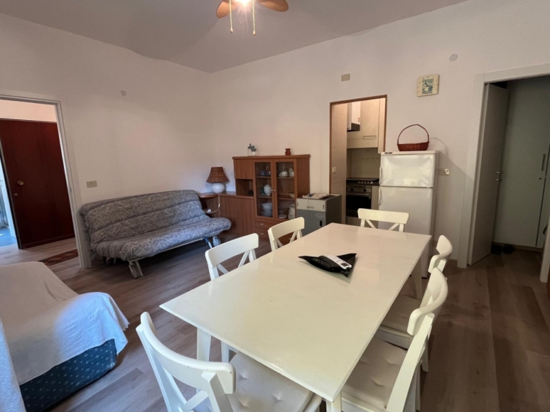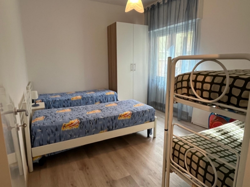 Composto da: ingresso; grande e luminoso soggiorno con possibilità di divano letto matrimoniale (tot 6 posti); 2 ampie camere da letto; cucinino con lavastoviglie; bagno finestrato con ampio box doccia; vano ripostiglio.