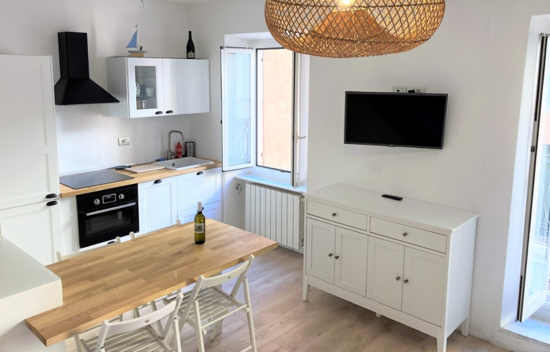 ubicato al piano 1° con solo mezza rampa di scale a pochi passi dal mare e dai negozi e con delizioso balcone dalla zona giorno che affaccia sulla centralissima piazzetta.