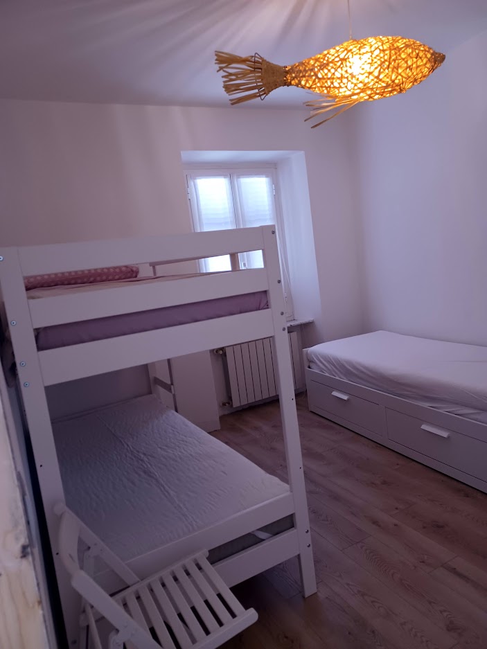 un piccolo disimpegno divide il soggiorno dalla zona notte composta da 2 camere da letto di cui una matrimoniale ed una con letto castello + letto singolo