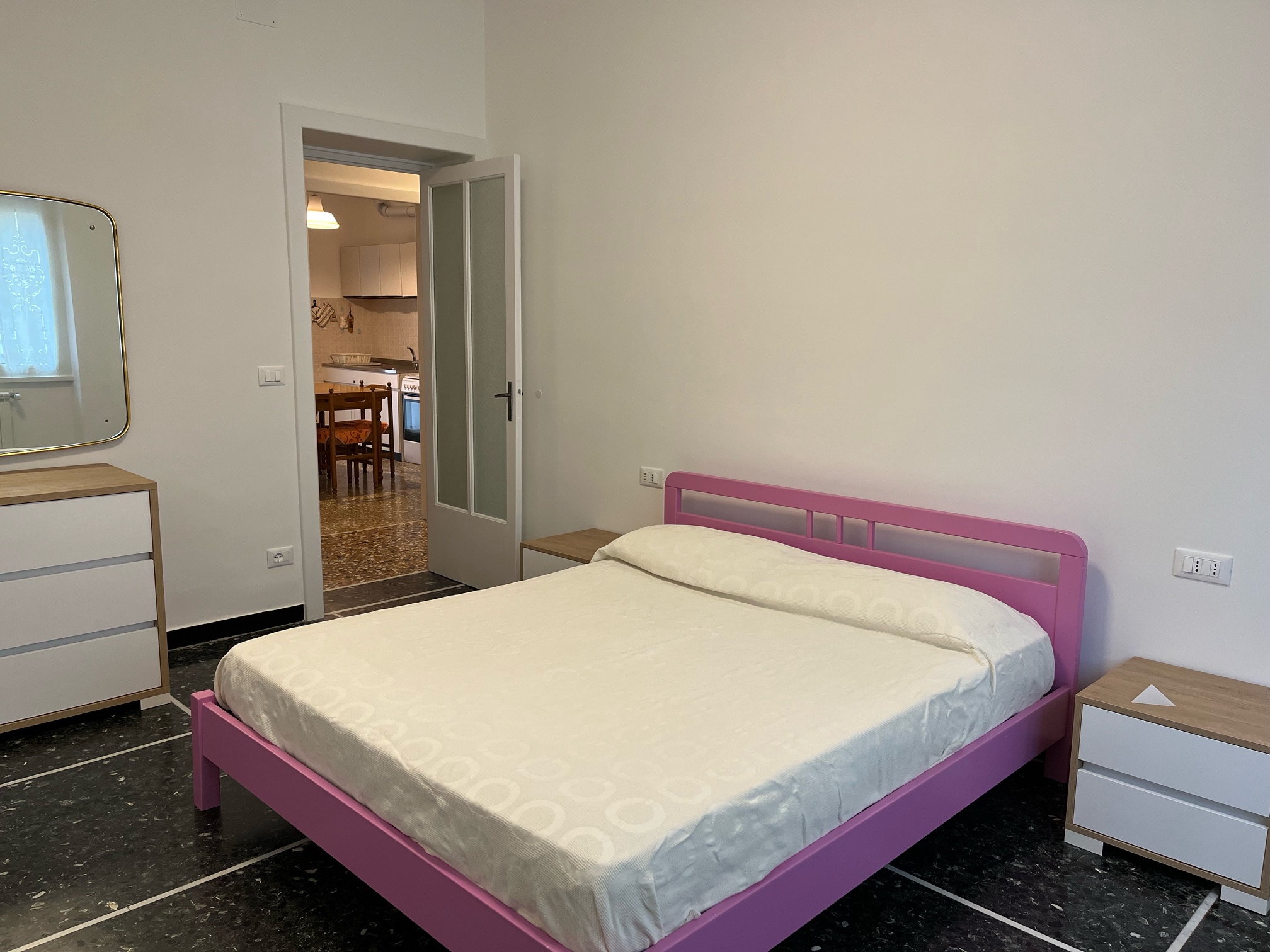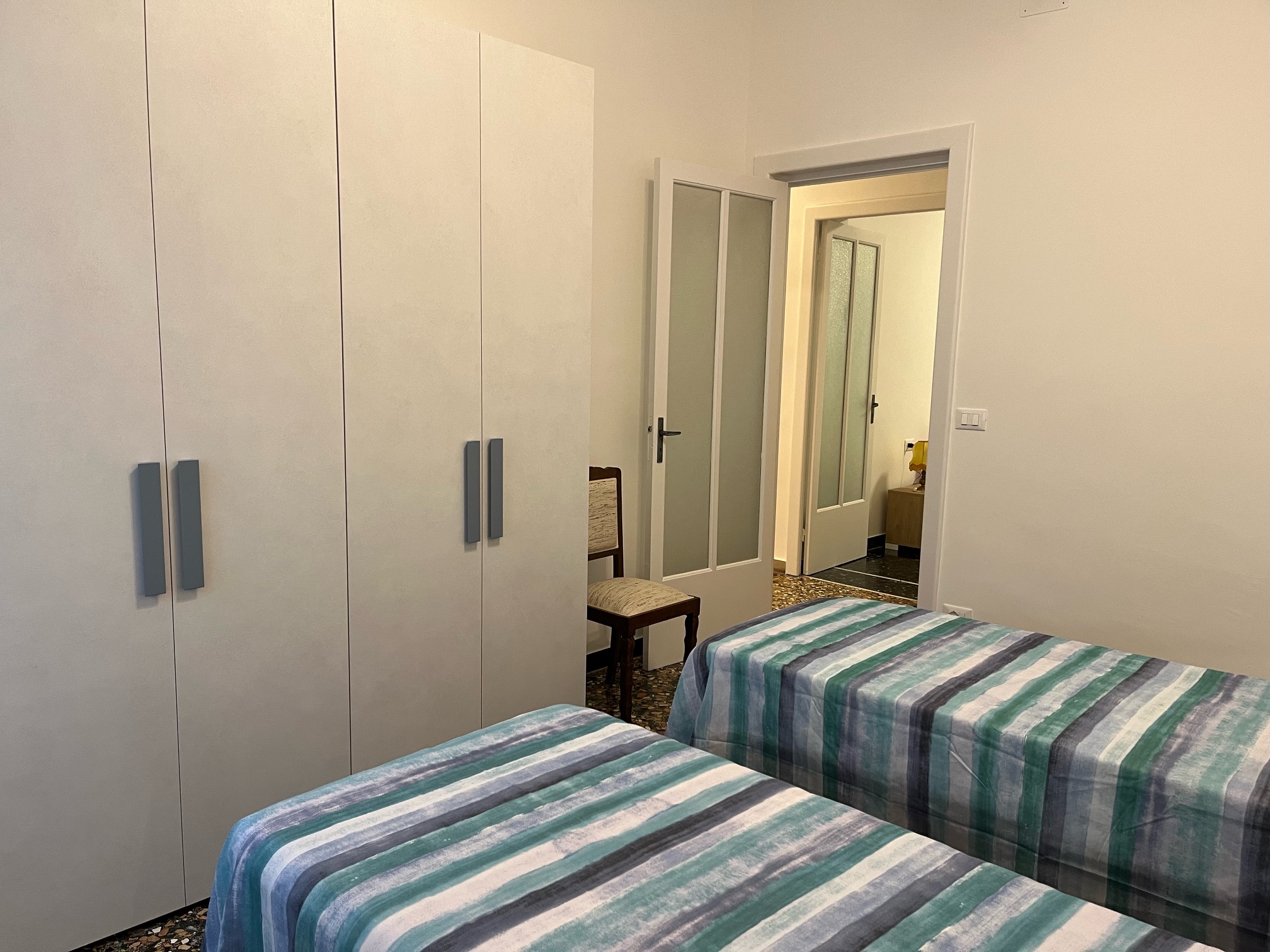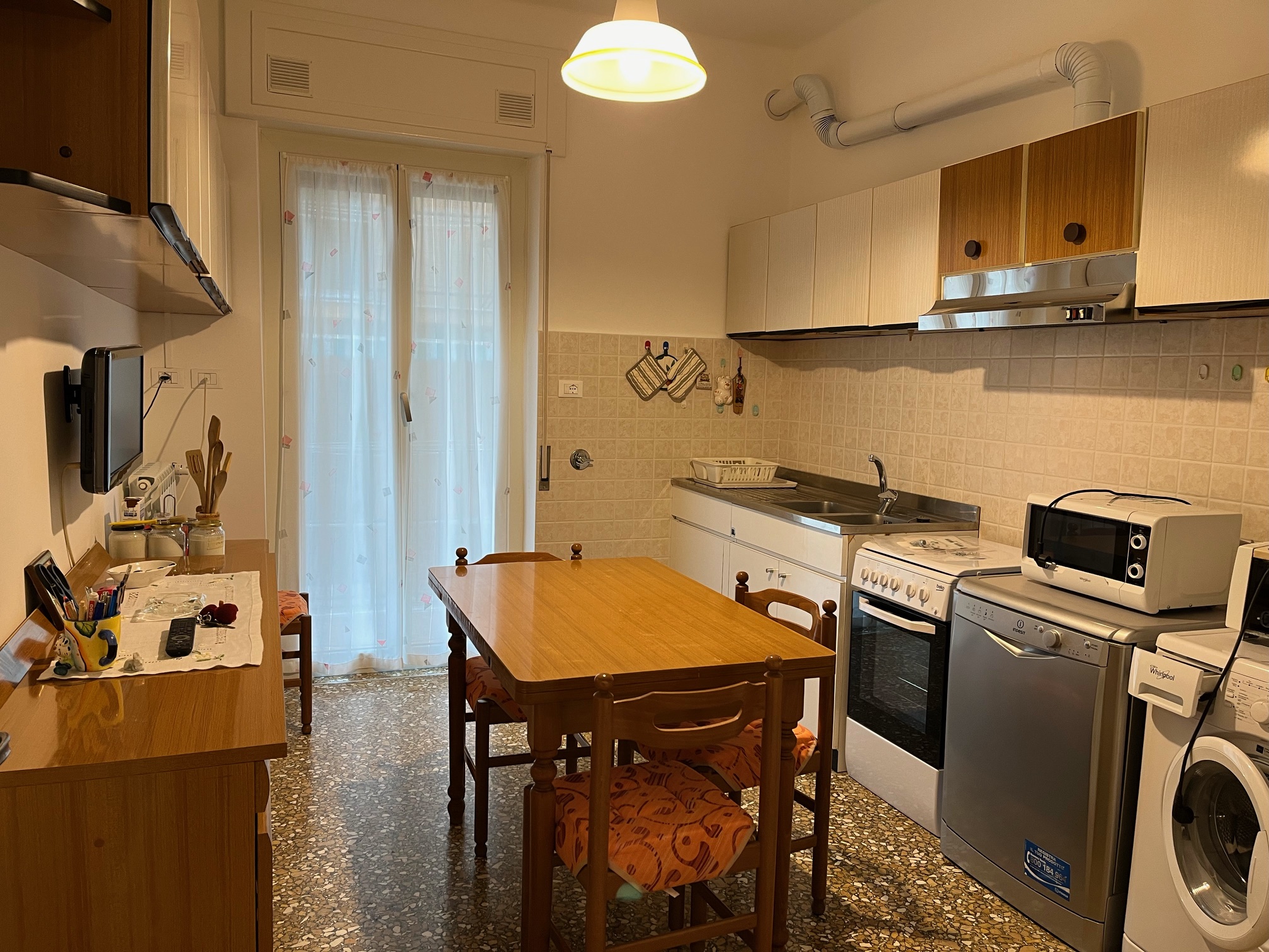 Cucina abitabile (lavastoviglie, microonde, TV) con affaccio su altro balcone. Camera matrimoniale, camera con due letti singoli entrambe veramente grandi. L’appartamento viene proposto per un Totale Posti letto 4 comodamente suddivisi in due camere da letto.